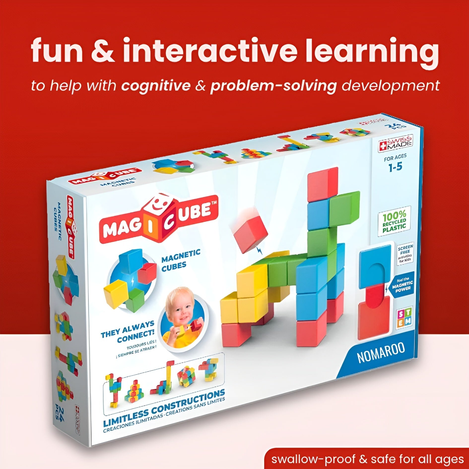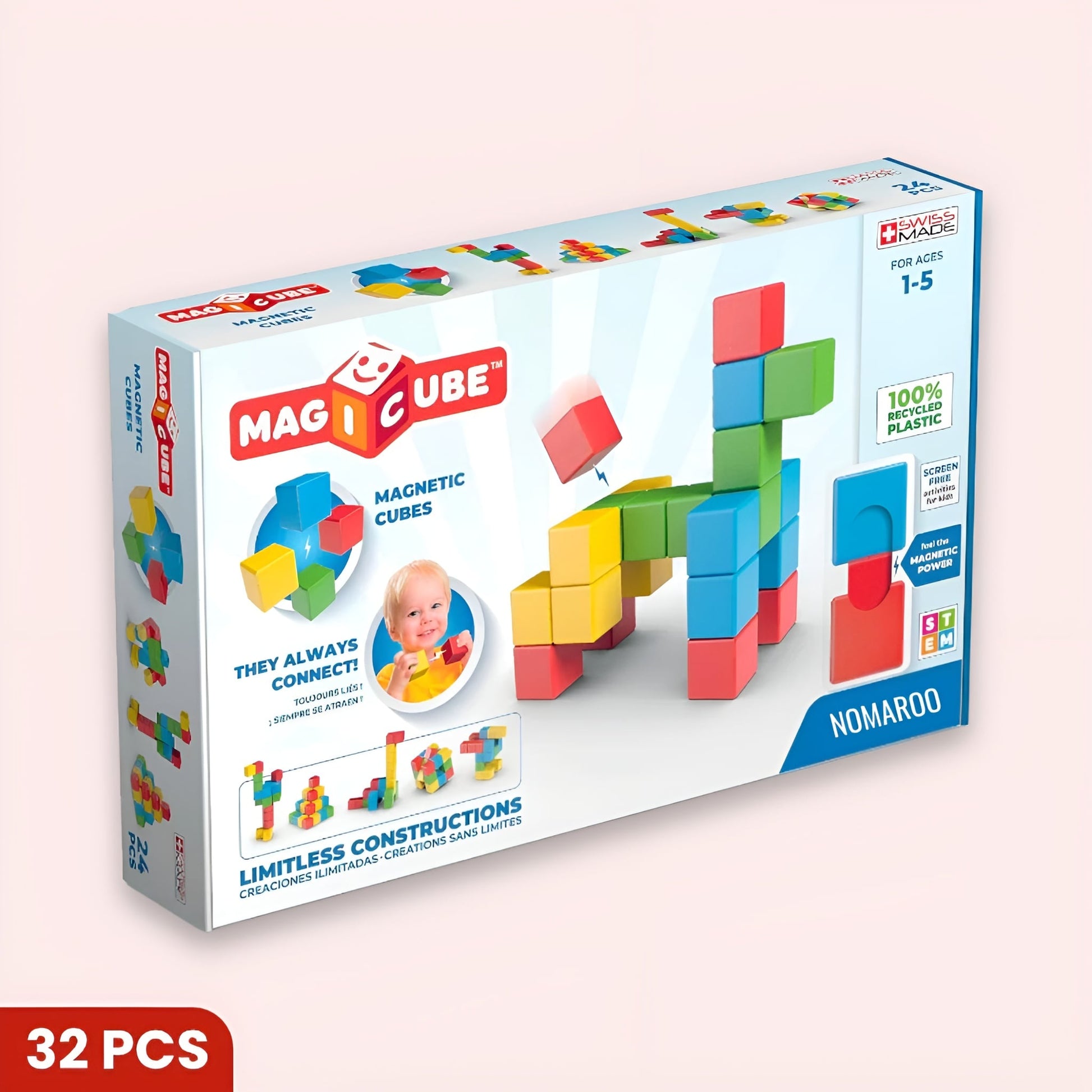 MagiCubes™ sind für Kleinkinder und junge Kinder (im Alter von 1-5 Jahren) konzipiert und fördern die Feinmotorik, Problemlösungsfähigkeiten und Kreativität durch praktisches Spielen.